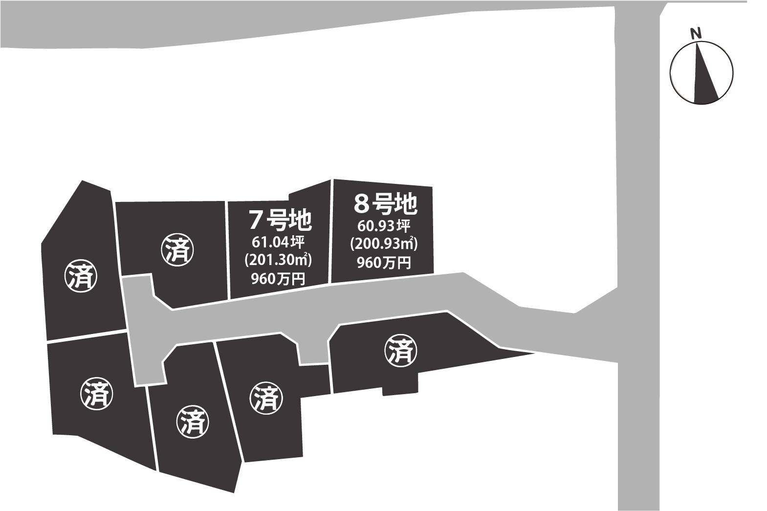 7号地:201.30㎡(61.04坪)960万円 8号地:200.93㎡(60.93坪)960万円