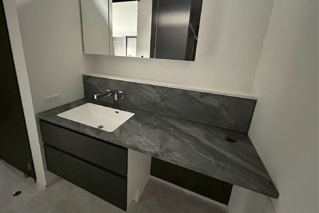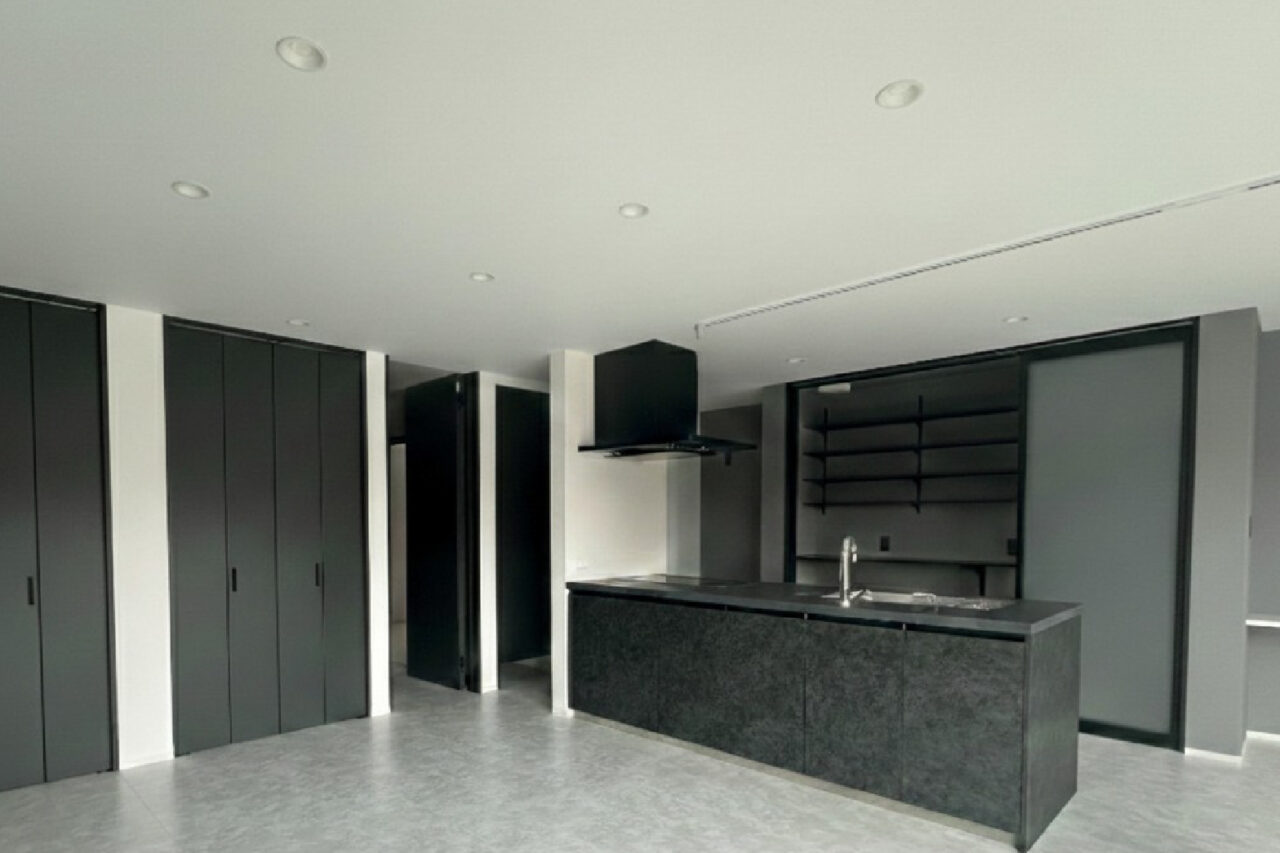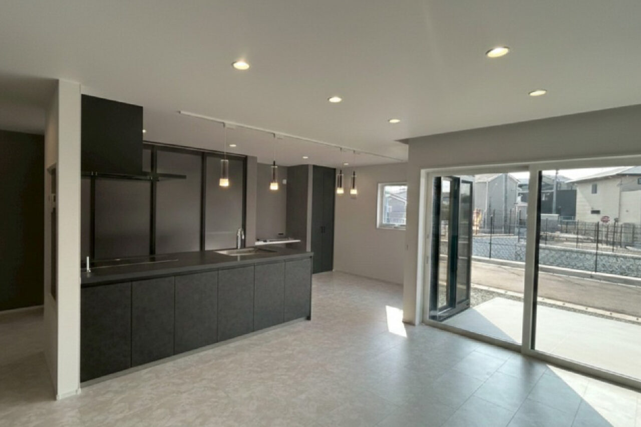 まるでホテルのようなグレーと白のコントラストが美しい室内。広々としたLDKや回遊動線が日常を彩ります。